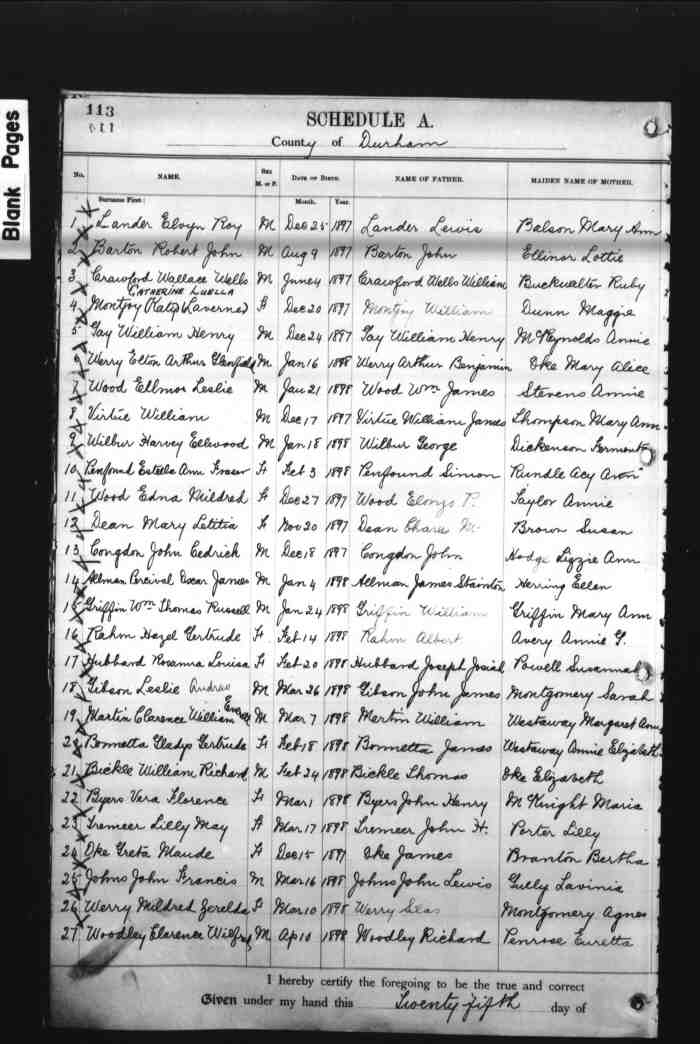Census: Age 86 next birthday (1777), C1016, pg 128, 1861, Enniskillen, Darlington, Durham West, Ontario, Canada. 8