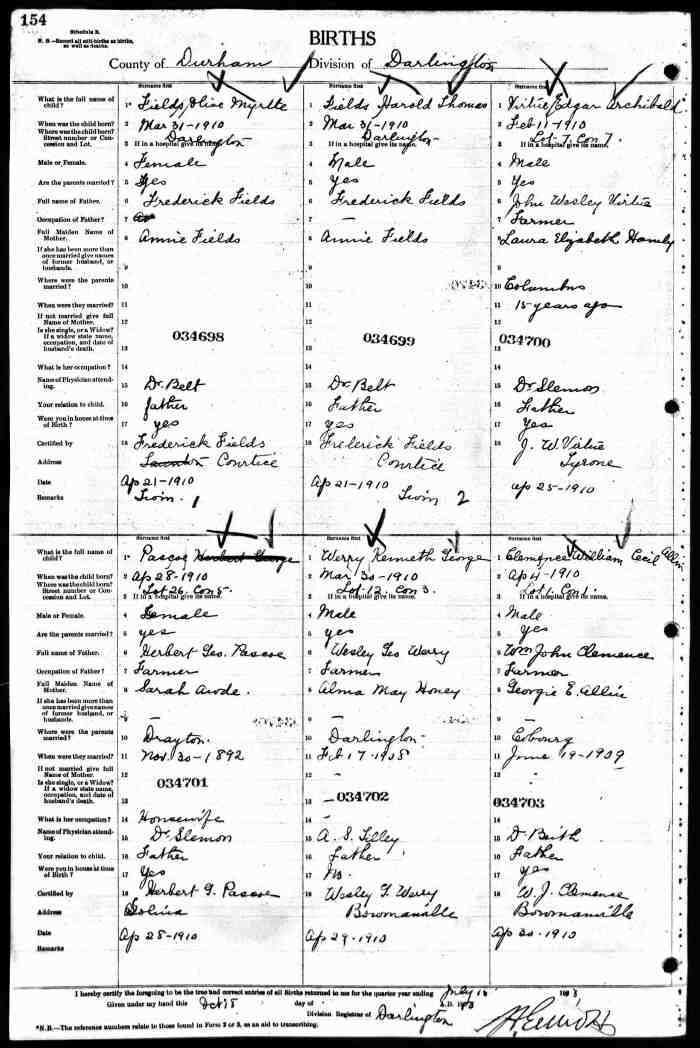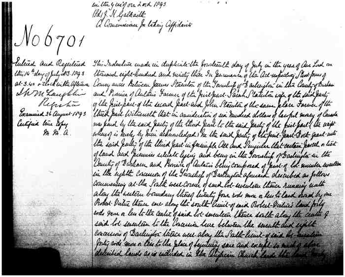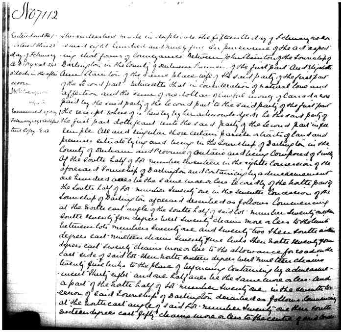 Will: #2640, GS1 1110, Will included in land records for Lot 4, Conc 7, 36, 5 Aug 1884, Darlington, Durham, Ontario, Canada. 99,100