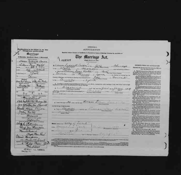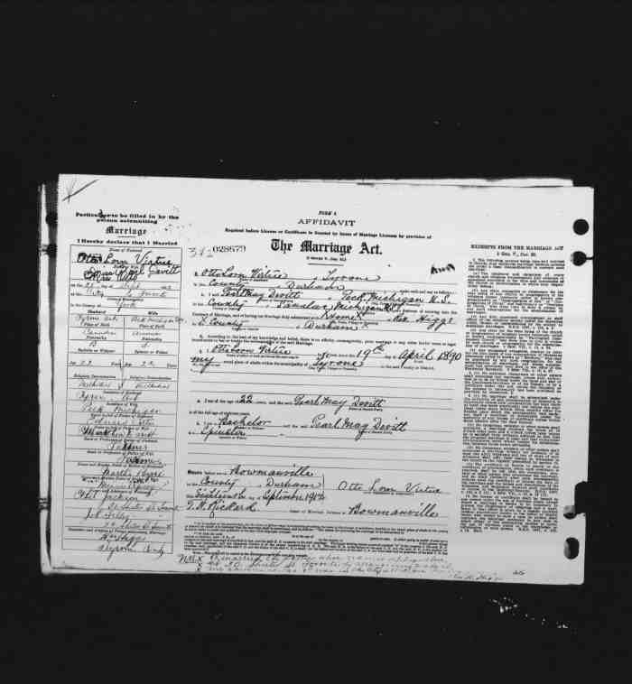 Robert married Martha Amanda Weller,48 daughter of Father of Martha Weller and Sallie Weller, on 19 Jul 1846 in Darlington, Durham, Ontario, Canada.49 Martha was born in 1830 in Ontario48,50,51,52 and died on 1 Mar 1897 in Forest, Bosanquet Twp, Lambton East County., Ontario, Canada51,52,53 aged 67. Another name for Martha was Matilda Vertue.51