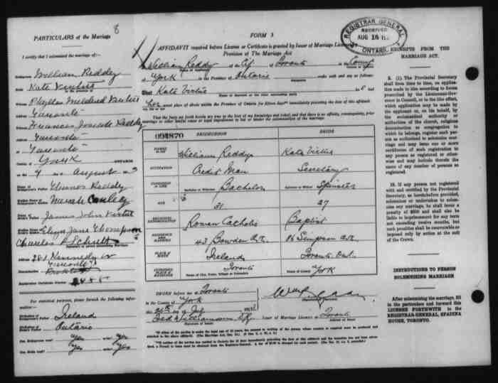 2. William Virtue was born between 1795 and 1807 in Northern Ireland, was christened on 13 May 1810 in St Mary's of Ardess, Magheraculmoney Parish, Fermanagh Co., Northern Ireland, died on 1 Nov 1889 in Tyrone, Darlington Twp. Durham County, Ontario, Canada,17 and was buried on 3 Nov 1889 in Enniskillen, Darlington, Durham West, Ontario, Canada.17 Another name for William was King William III.93