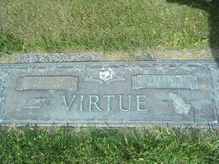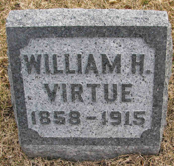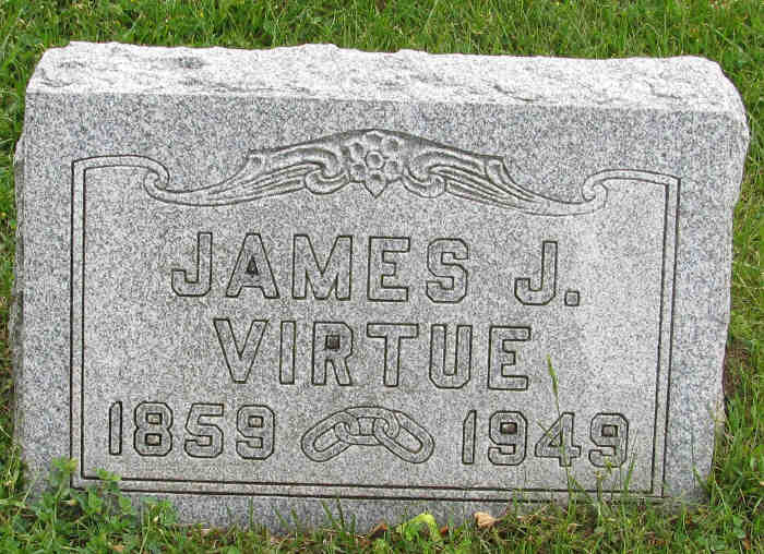 William was apparently a big man and he always rode in the Orangeman's Parade representing the king (perhaps King of the Parade) from which he earned the nickname King William III. They had three children, Robert, b. 1833, James William, b. 24 June 1835, in Ireland & Suan, b. abt 1840, probably in Canada. Wiliiam Virtue died 1 Nov. 1889 and his wife Rebecca died 3 Aug. 1884. They are both buried in Trinity Anglican Church Cemetery, Enniskillen, Darlington Twp, Durham Co., Ontario.