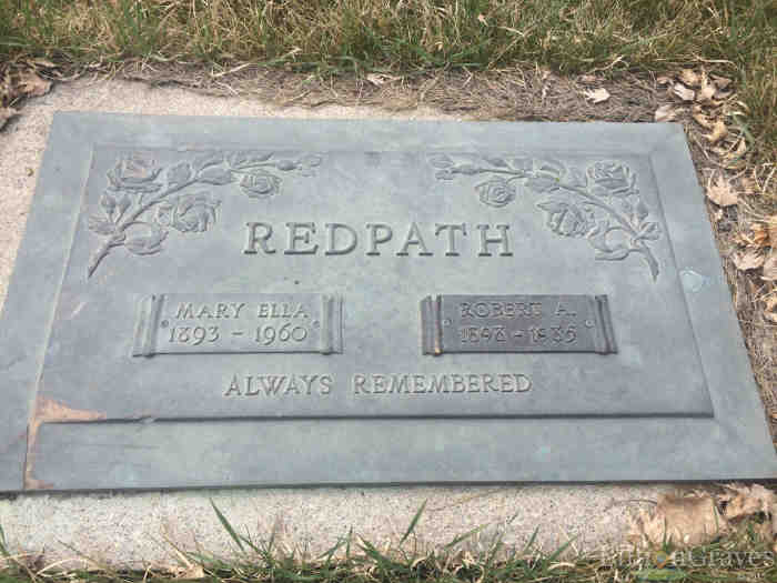 548. Isabella Redpath 1235,1236 was born on 15 Sep 1900 in Assiniboia Territory (Saskatchewan,1235,1236 died on 12 Aug 1979 in Edmonton, AB but buried in Queen's Park Cemetery, Calgary, AB aged 78, and was buried in Queen's Park Cemetery, Calgary, Alberta, Canada.