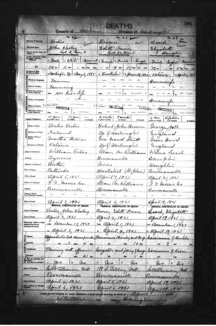 3. John Virtue 18,19,20,21 was born between 1811 and 1822 in Edinburgh, Scotland?,18,19,20,21,22,23 died on 3 Dec 1905 in Enniskillen, Darlington, Durham West, Ontario, Canada,20,21 and was buried after 3 Dec 1905 in Enniskillen, Darlington, Durham West, Ontario, Canada.24