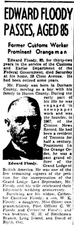 The speakers and orators, who were to address the assemblage, always came prepared. The orations and speeches, so far as I could tell, did not vary a great deal from year to year. We youngsters did not bother much about the speaking, if there happened to be an open field near, in which we could play ball. But I heard many speeches nevertheless-often there was no place convenient for ball game. One old veteran orator, from Cavan I believe, an Anglican Rector, in long gown, and all the insignia, that went with being among the higher ups in the Order, I remember hearing in Virtues grove, at time mentioned. He told about the fights he was in, and the persecutions he and his underwent for cause of Protestantism in Ireland, and his bitter denunciations of the Papists he called them, was most forceful, particularly so, when he exhibited a lump the size of a hen egg on top of his head, where, he said, a Papists brick had hit him, forty years before.